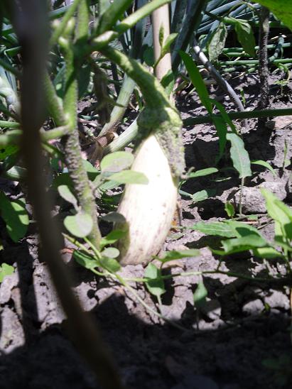 une julia hative qui va finir en salade!! chantal74, en visite ce taprès midi, et qui repart avec un bouquet d'oignon patate!! (oignon perpétuel!) première courgette "blanche de virginie" ..................à suivre