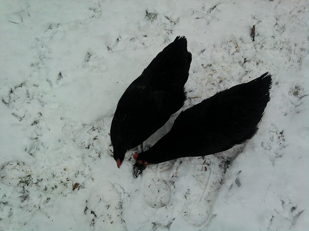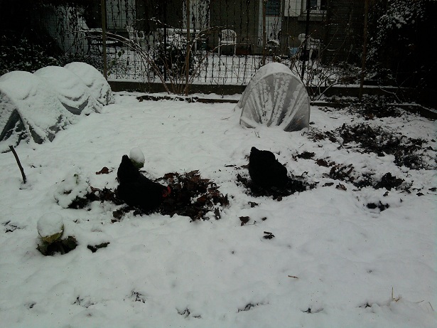 Juste pour le plaisir des photos du jardin sous la neige et des poules.