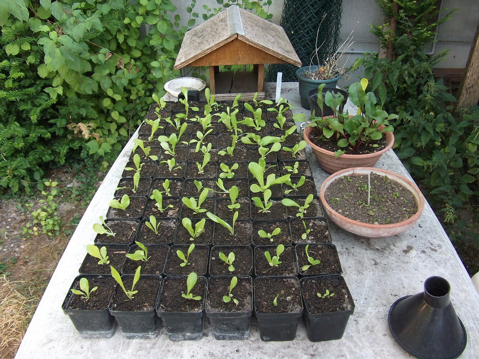 Je repique des salades en pots et je relance un semis.