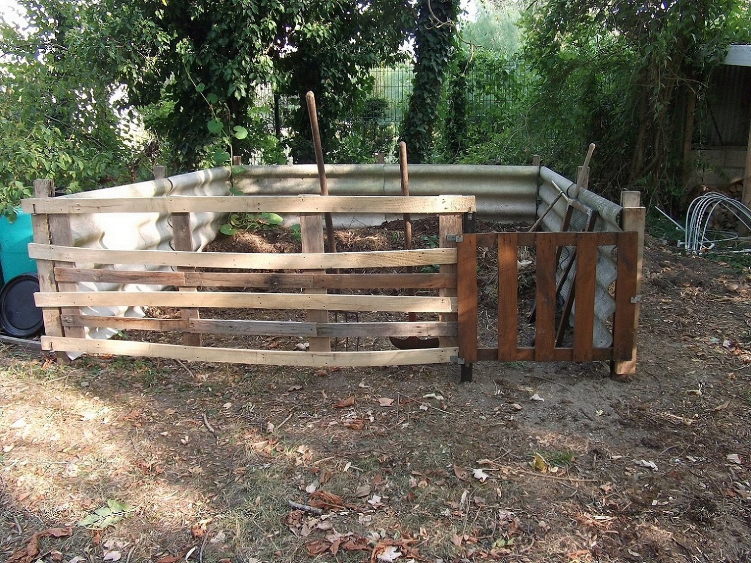 J'ai fini la clôture du troisième composte où, justement, la "peluche" aimait se vautrer et ramener toutes sortes de choses à la maison.