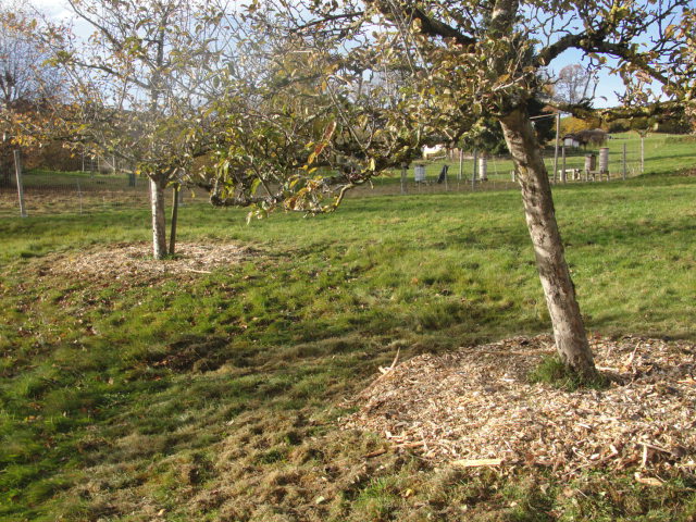 Un cerisier et un cognassier ont aussi reçu leur couronne de carbone - que je n'ai pas recouvert d'herbes, cette année.