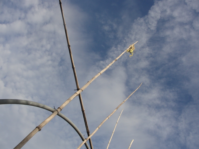 Il est rigolo ce fanion en haut de ce piquet, haricots secs ou juste des restes de feuilles des plants.