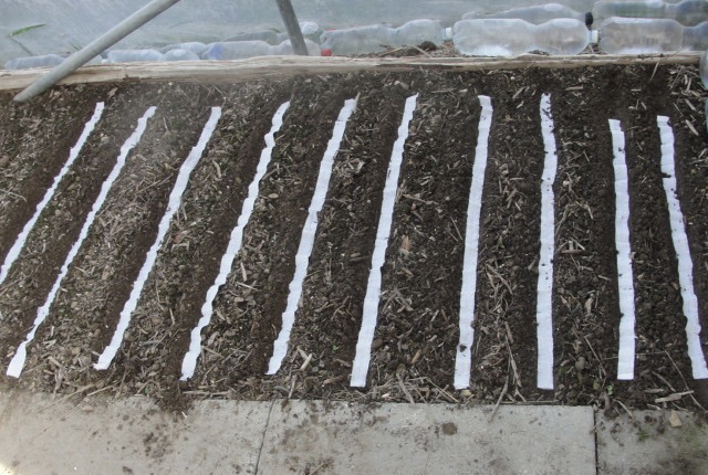 Malgré mon pessimisme j'ai semé cette mâche ... surtout pour expérimenter le semis sur ruban.