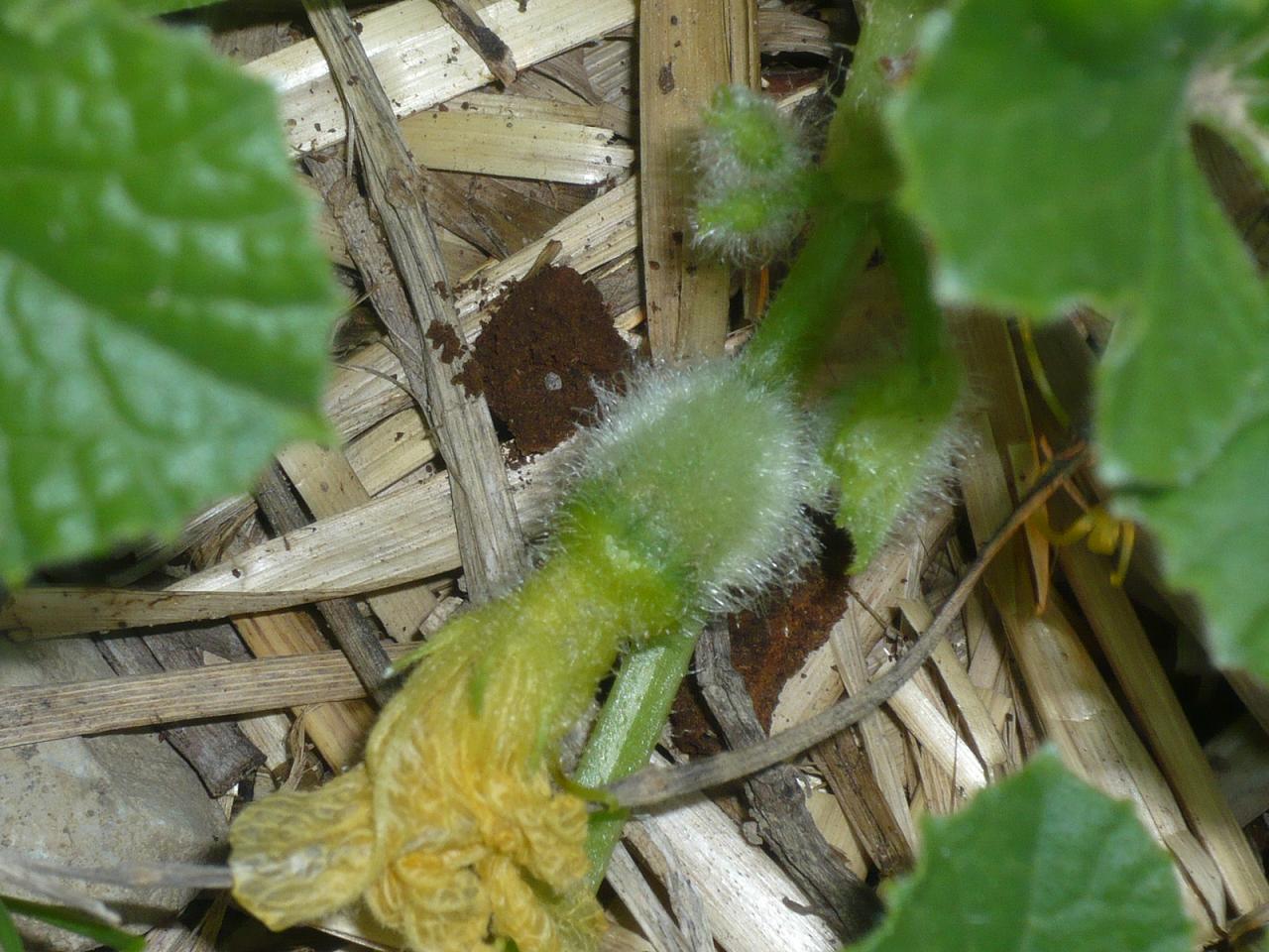 Aujourd'hui cueillette de haricots et pois gourmands puis désherbage des melons et lespremiers fruits apparaissent