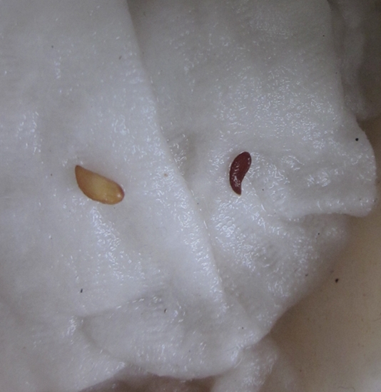 En bonus j'ai même trouvé 2 toutes petites graines dedans ( une marron et une blanche). Et zou! les graines dans le coton !