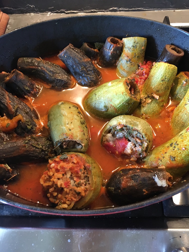 Faute de pommes de terre : courgettes et aubergines farcies.