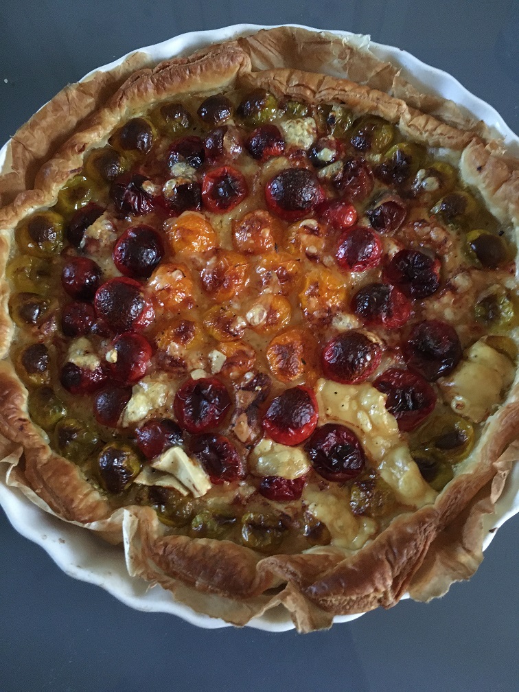 Mais après avoir passé les tomates au moulin, j'ai pu préparer une tarte aux tomates cerises au comté