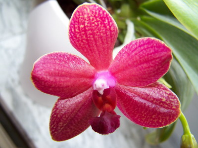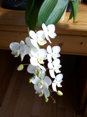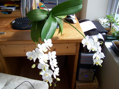 Je viens de lire les 28 pages du forum mais je n'ai pas trouvé de mention de mon problème. Mais avant je vous plante le décor : j'ai acheté début février 2 Phal pour le prix d'une (10 €), puis coup sur coup 8 autres à une promo chez Aldi (les Franciliens connaissent), au début à 7,90 € la pièce puis le même prix pour les 2 bref, je suis en passe de tomber dedans... soit 4 phal, 1 cambria, 1 paphiopedilum, 1 dendrobium phalaenopsis, 1 miltonia, 1 zigopetalium, 1 oncidium... j'ai pris les 2 premiers pour la fleur, les deux suivants le ledemain pour la même raison, le troisième jour pareil mais un WE entre les deux, et les deux derniers, le miltonia et le sabot de Vénus en dernier, parce qu'avant ils n'étaient qu'en bouton, je ne savais pas ce que c'était exactement...