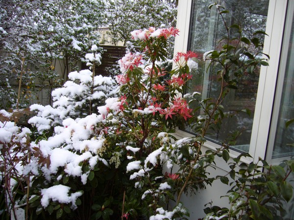Ici il a gelé, mais la neige qui est tombée à fondu, beaucoup de fleurs abîmées par le gel malgré tout notamment les azalées et Rhodo