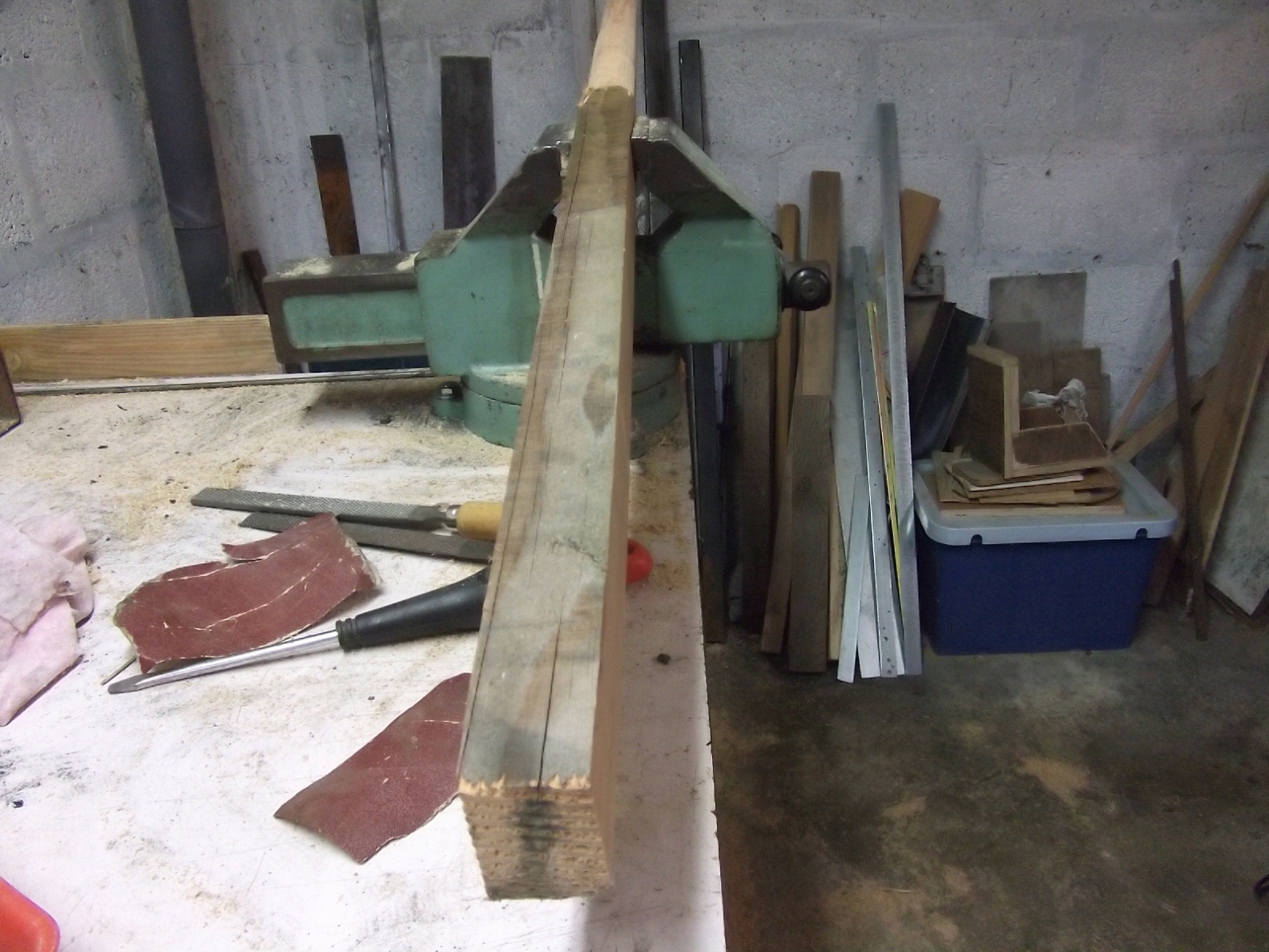 J'ai fait refendre un morceau de bois ( 100 x 50 x 1500) Ensuite, à la râpe, je rectifie le carré en rond. Le TIG (Tingsten Inert Gas) est de la soudure à l'arc mais avec une électrode (Tingstène) qui ne doit pas toucher la pièce.