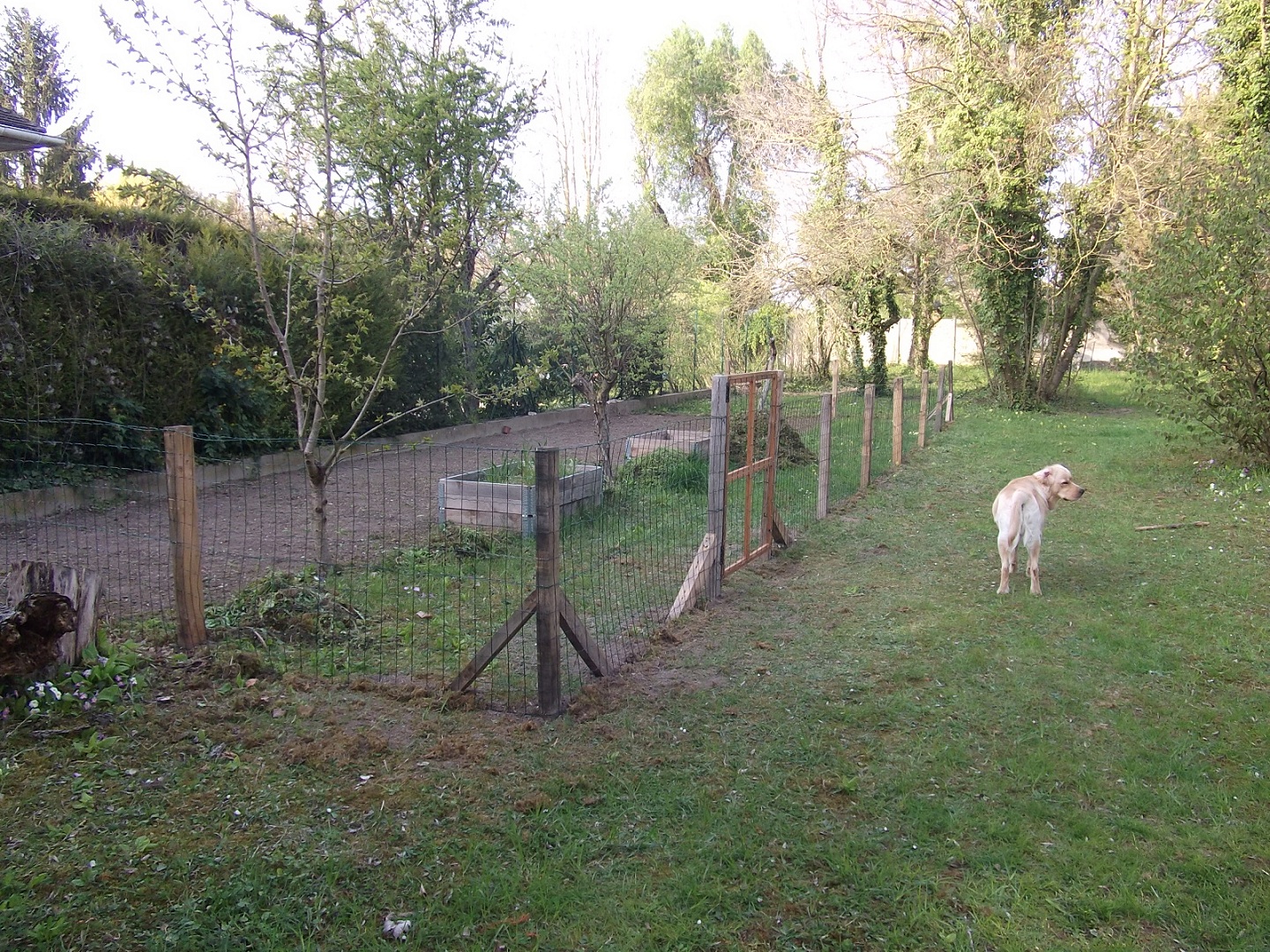 La deuxième parcelle, principalement réservée aux haricots, a été agrandie et clôturée. (devinez à cause de qui)