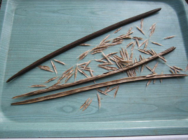 le voici en fleurs les grandes gousses qui pendent aux arbres jusqu'au printemps