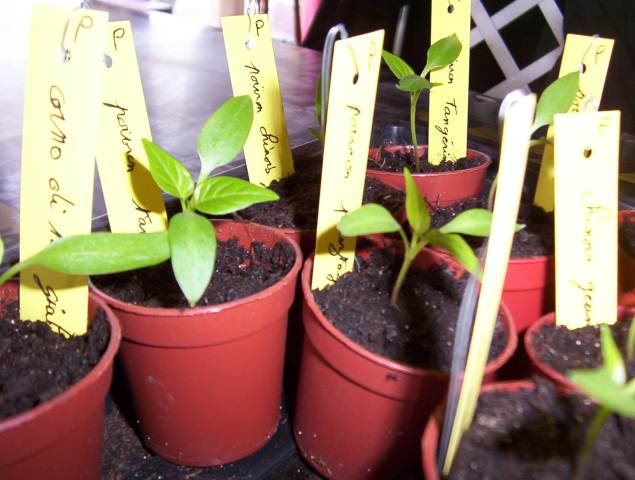 mes poivrons en sont à peu près au même stade que les tiens. Et la tige à la base est aussi dégagée, sur une même longueur. Ne faudrait-il pas rajouter un peu de terre ou est-ce normal ? Qu'en penses-tu ?