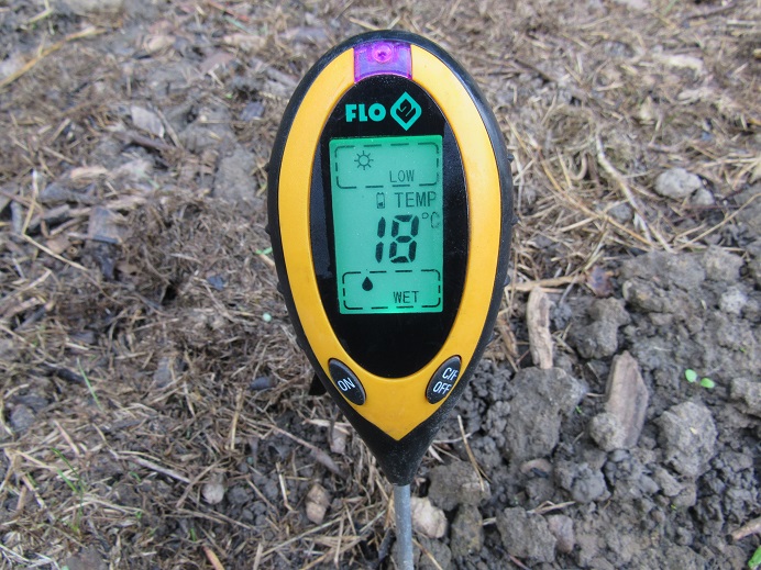 Samedi dernier au petit matin,par curiosité j'ai pris la température du sol à 10 cm de profondeur afin de reprendre une mesure ce matin pour constater la baisse suite à cette première semaine froide.