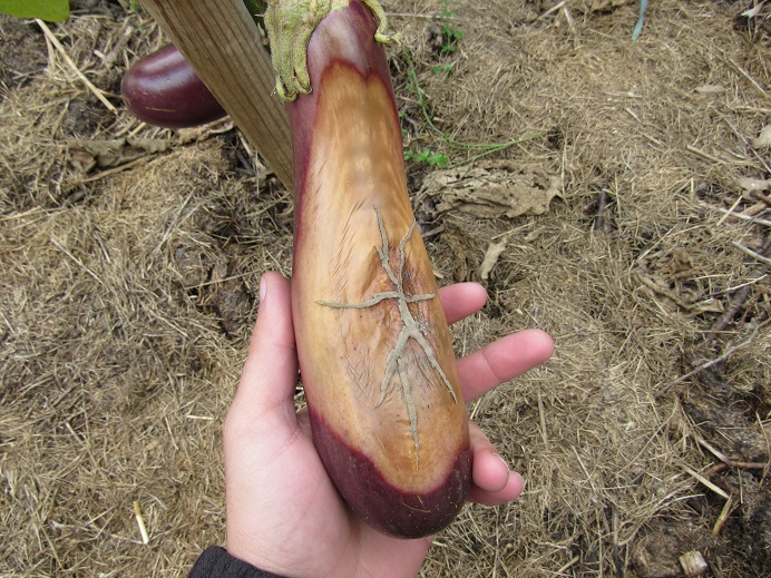 Une aubergine qui a semble t'il gelée.