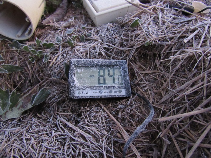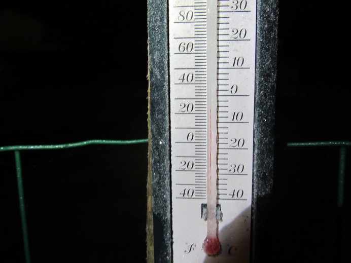 Mercredi dernier,le mercure c'est abaissé sous les -8°C au niveau du sol (température toujours plus basse qu'à 1m50) dans le potager à 1 m des haricots.