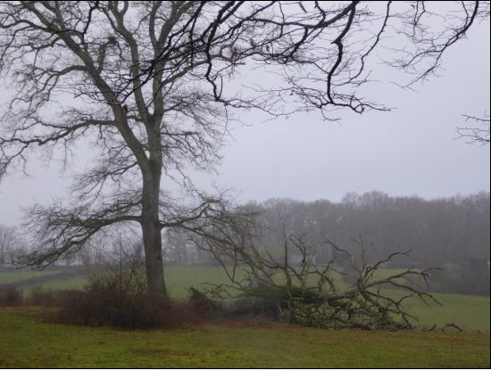 Il me semblait qu'il était interdit d'abattre un chêne de plus de? (Je crois bien que c'était 50 and mais plus trop sûr), et je ne me rappelle plus s'il y'avait la même règlementation concernant d'autres espèces. Bon si c'est le vent le coupable, lui il profite de son immunité.