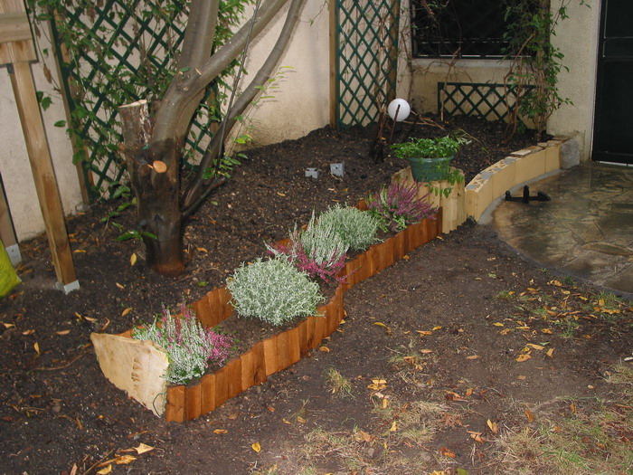 On vient de finir la partie maçonnerie du jardin, en fait deux petits murets ont été fait un de chaque coté de la grille principale, il ne reste plus qu'à les habiller. Demain on continue l'aménagement des bordures et qui sait peut être que je vais peut être pouvoir planter mes santolines et mes bruyères