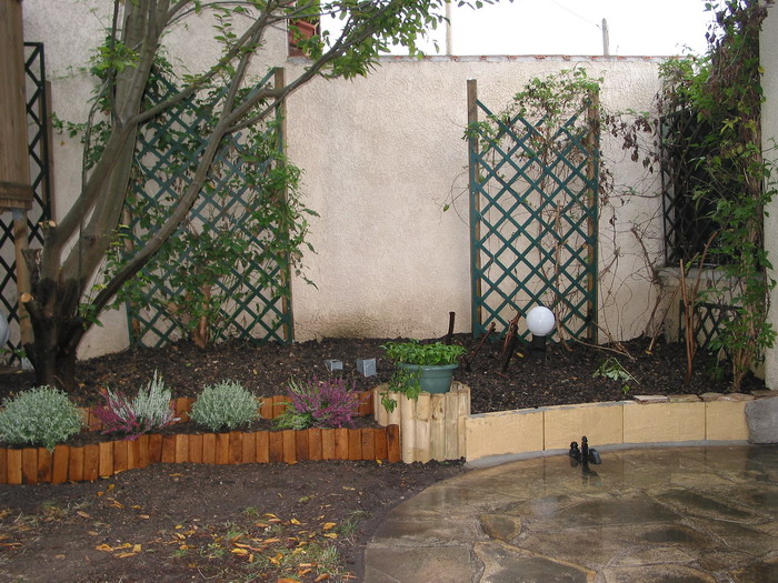 Ce que l'on voit au fond le long du mur ce sont deux clématites et un chèvrefeuille que je dois tailler afin d'espérer une floraison pour l'année prochaine car cette année ils n'ont rien fait