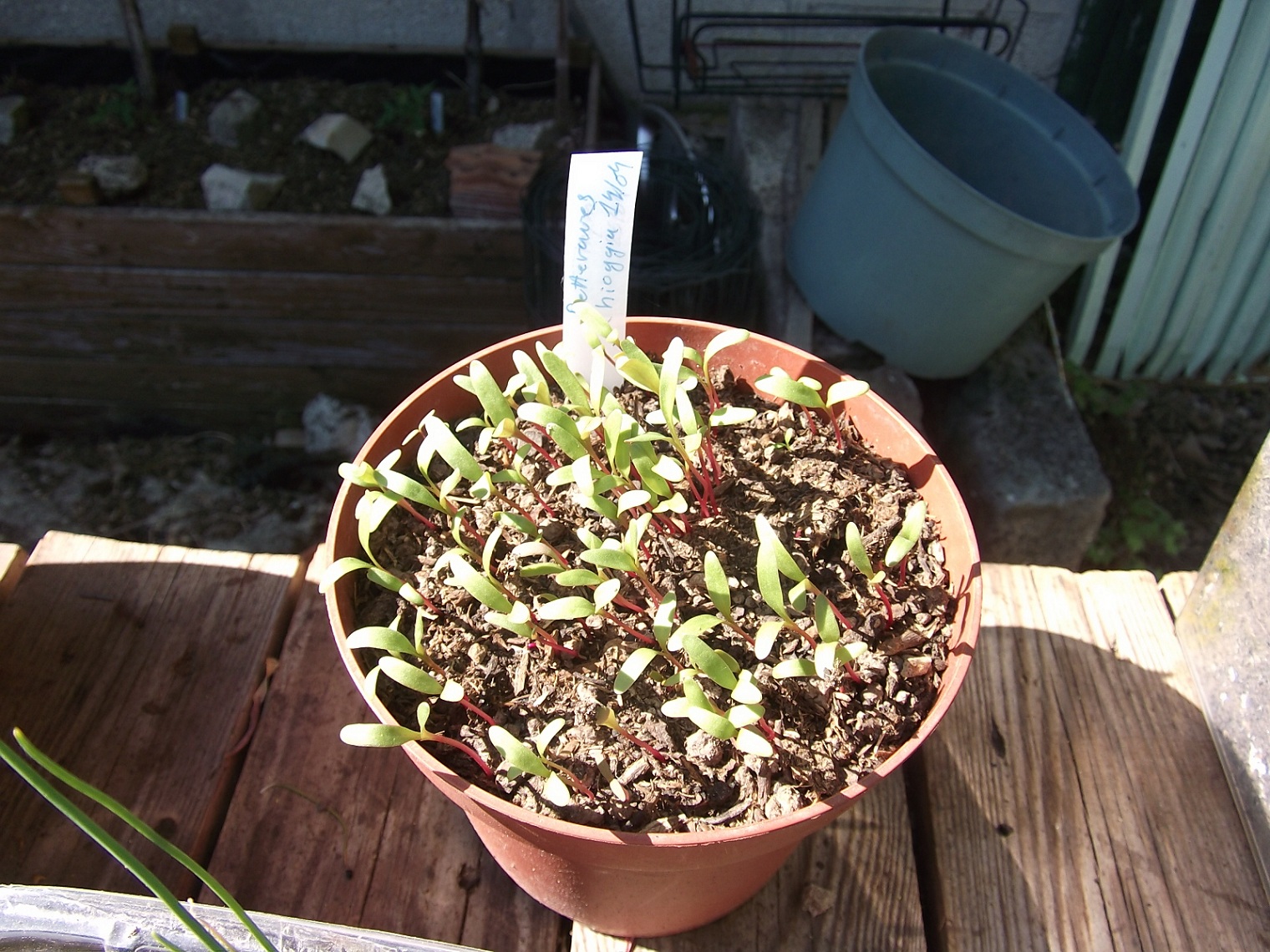 Mais comme il a fait beau de temps en temps j'ai repiqué des betteraves Chioggia en pots.