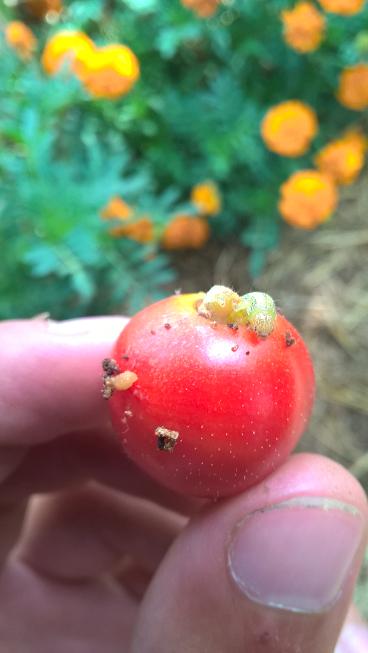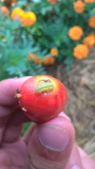 Depuis plusieurs jours je remarque dans le tunnel Ă tomates des chenilles qui attaquent mes fruits.