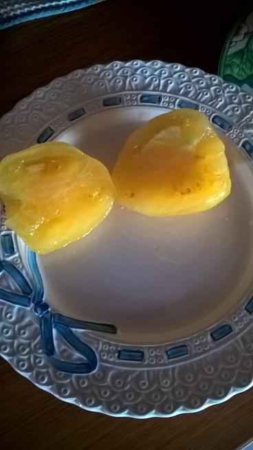 Elle est sublime cette tomate, de couleur jaune citron, bien appétissante et charnue aussi.