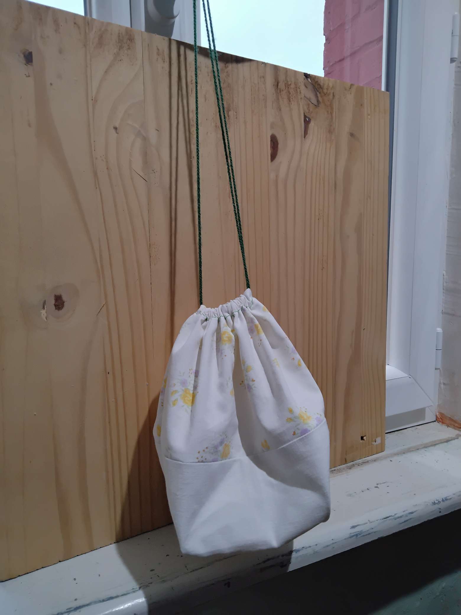 Pour mon premier pochon, petit et plat j'ai utilisé de la toile, mais je me suis rendue compte que la coulisse ne fonctionnait pas tellement, je suppose car le tissu est trop ferme.