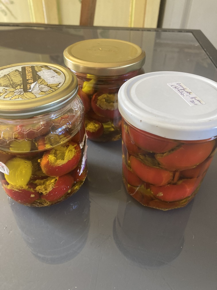 et voilà les 3 bocaux de Hot cherry farcis de thon + câpres préparés la semaine dernière