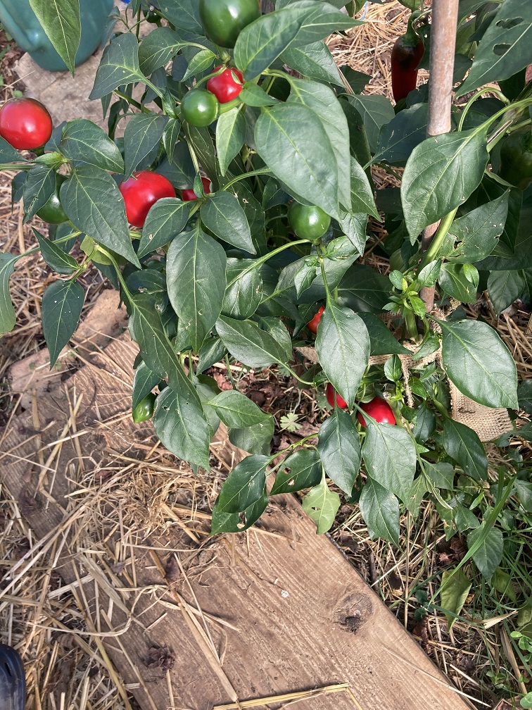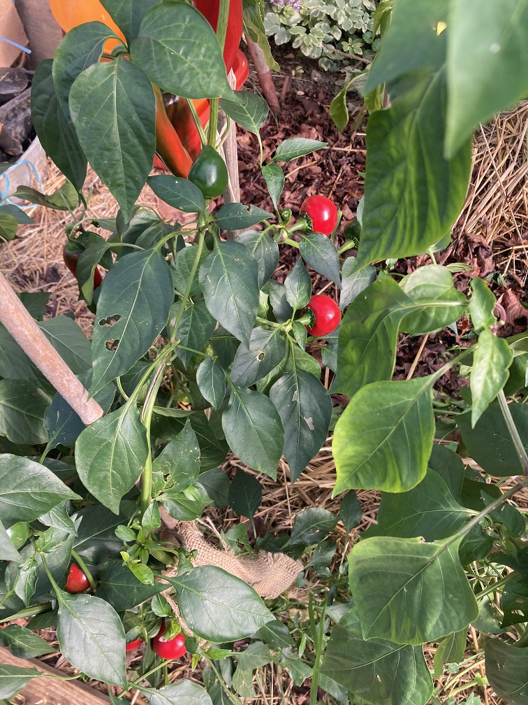 J'ai aussi encore quelques poivrons sur les plants du petit jardin, ils commencent à mûrir alors que je n'y croyais plus.