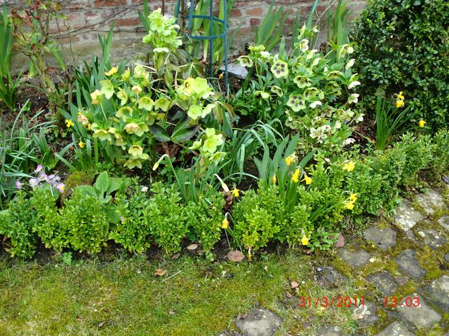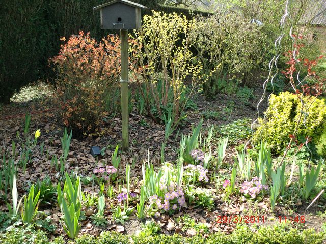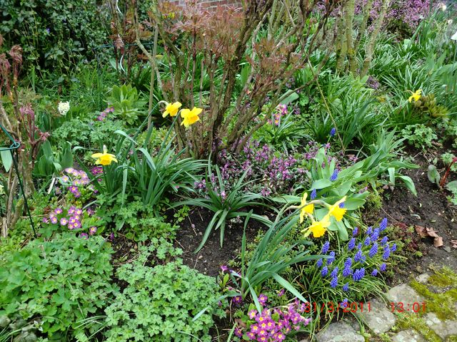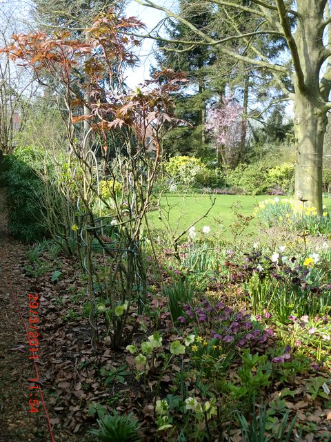 Le pauvre magnolia stellata est dominé !! mais le tapis qui s'étend à son pied n'est pas si moche que cela !!. Mon stock est important quoique déjà caduque !!. Le soleil est là bien qu'il pleuve et vente +++.
