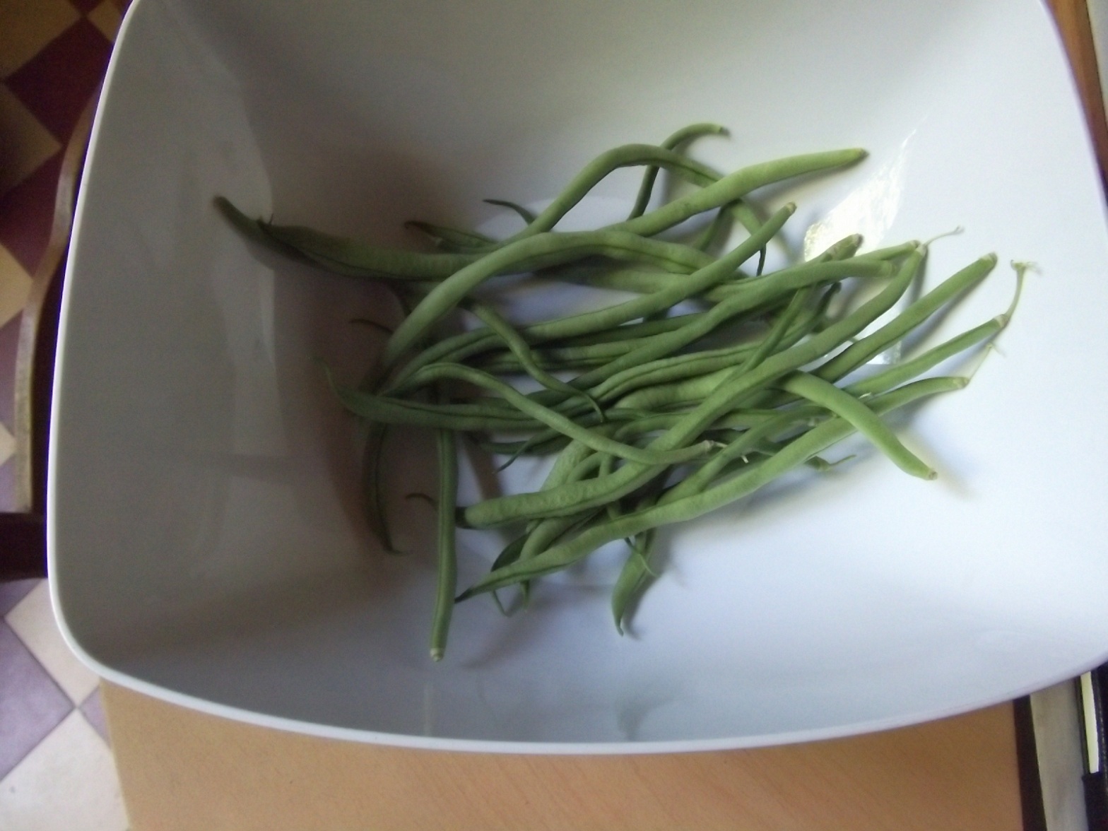 Pour les haricots verts, j'ai dû avoir environ 2 kilos ; ce sont des delinel et les pieds commencent aussi à jaunir. Les plants de courgettes ne donnent rien et les 2 seules courgettes qui ont poussé sont dures comme tout et ont arrêté leur croissance.