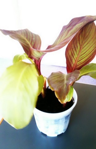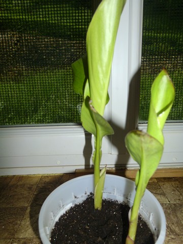 welcome: une amie ma donné un bulbe de canna , voila ce que cela donne aujourdhui , jai de belle feuille verte mais a la pointe du marron apparait , est ce normal ,