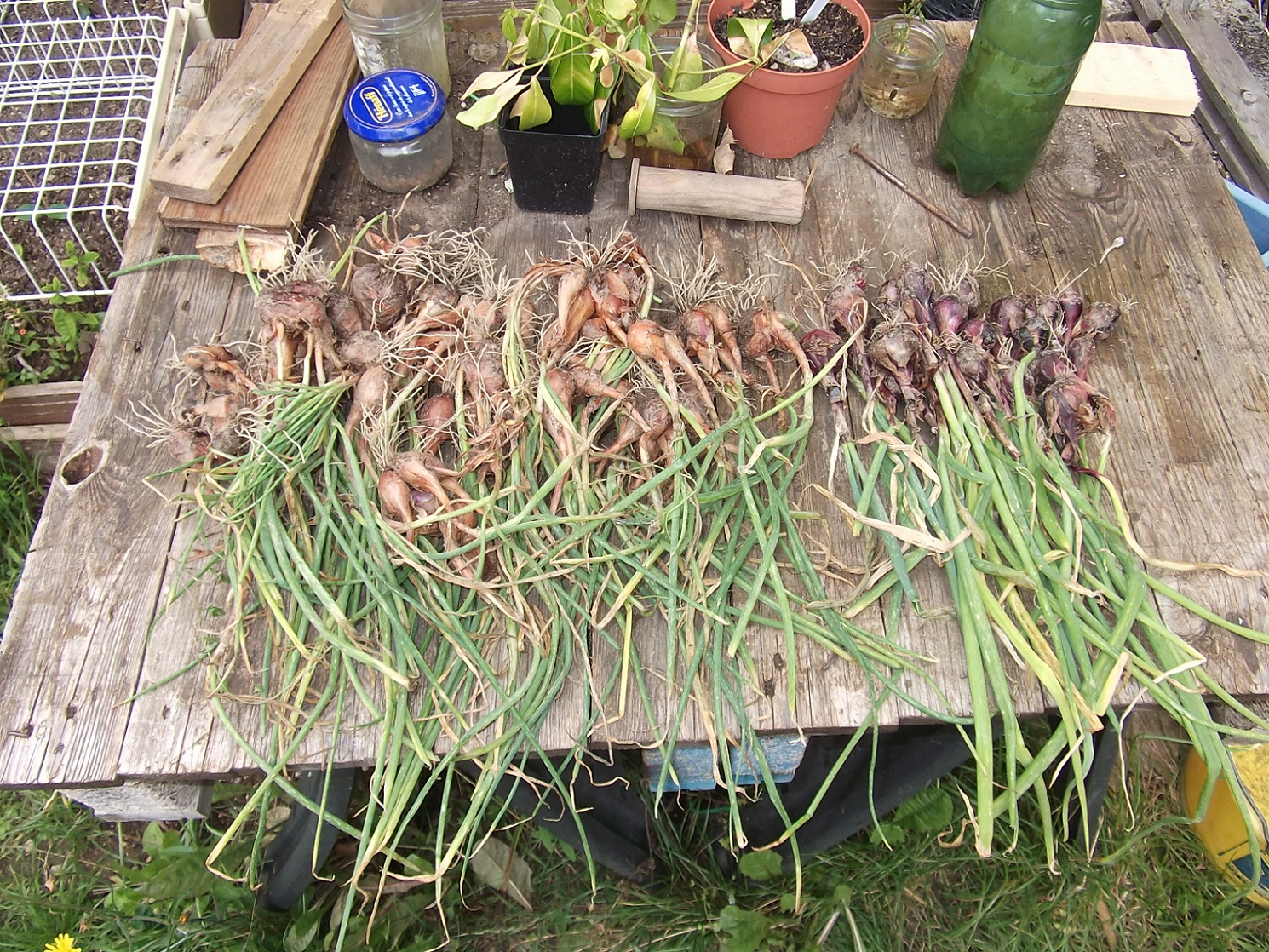 J'ai récolté les échalotes et les oignons.