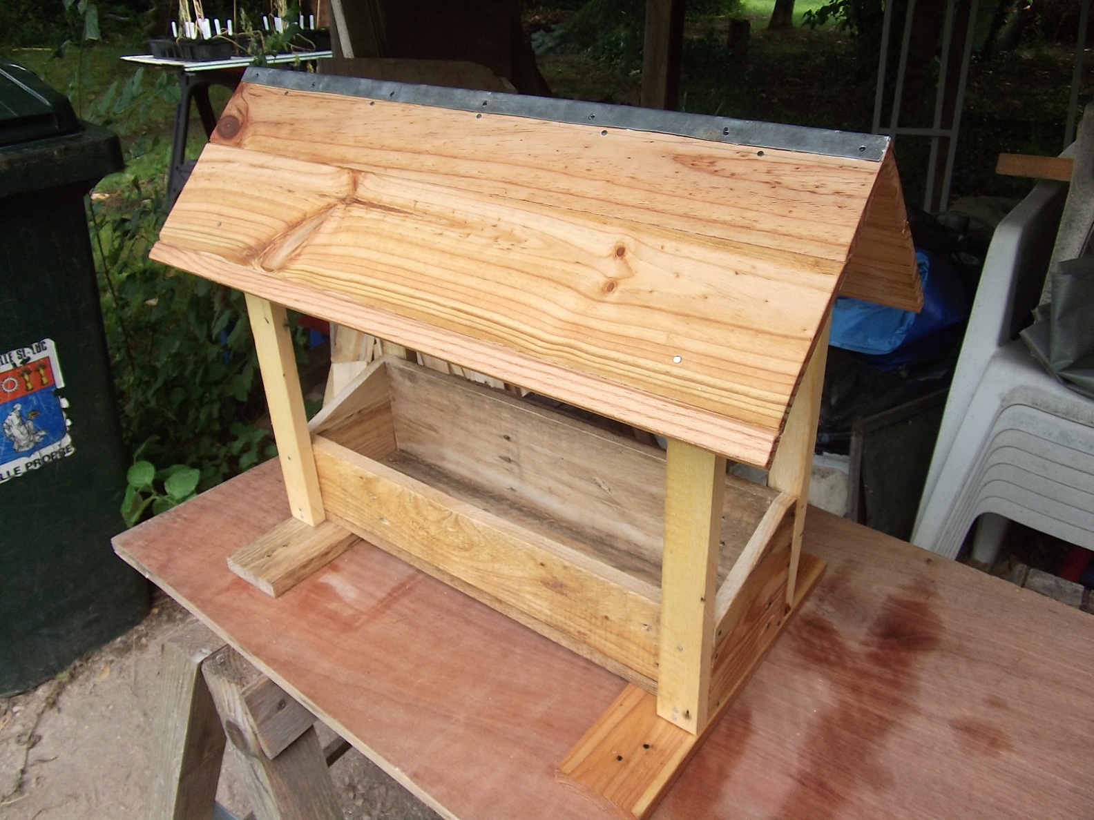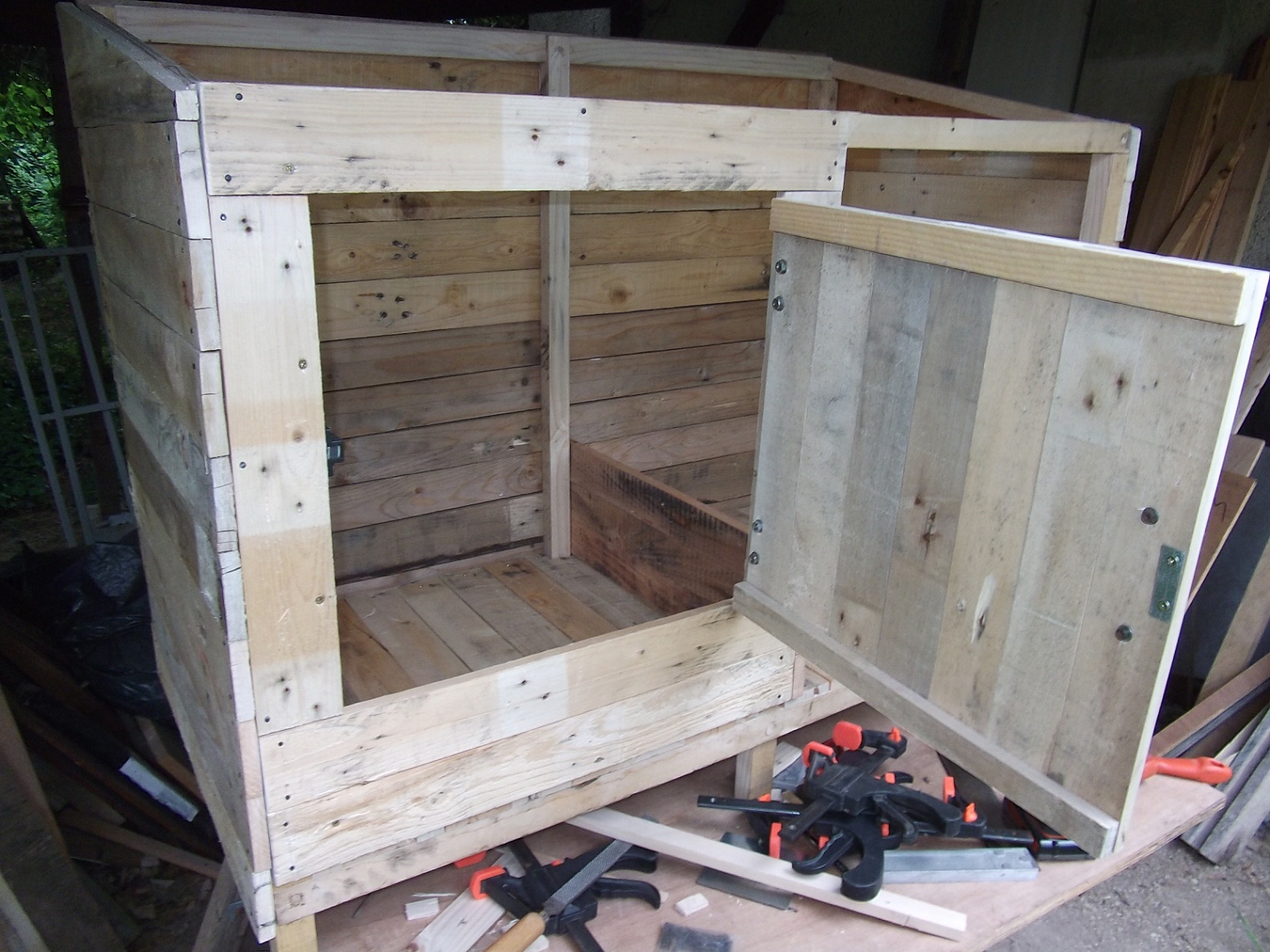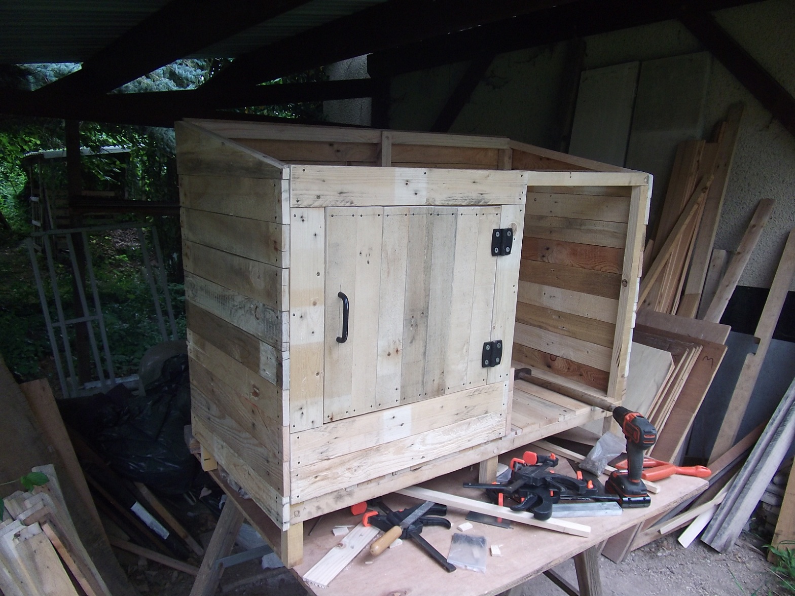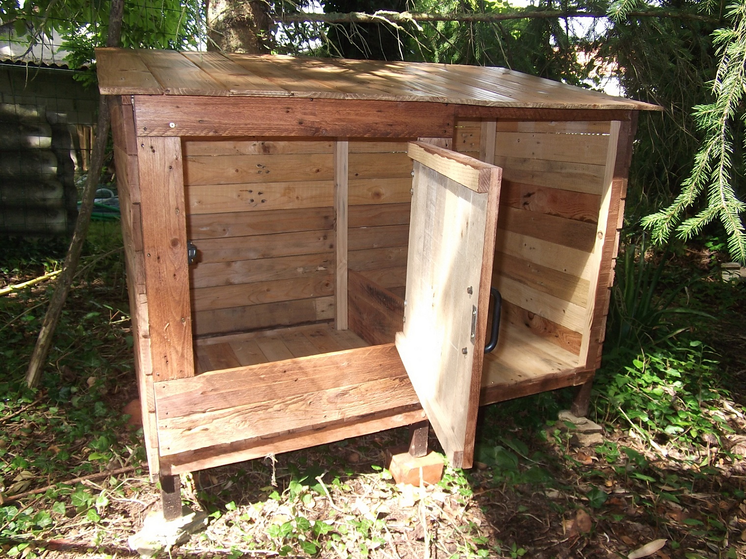 Oui, c'est du fait maison avec du bois de palette et les toits en lambris.