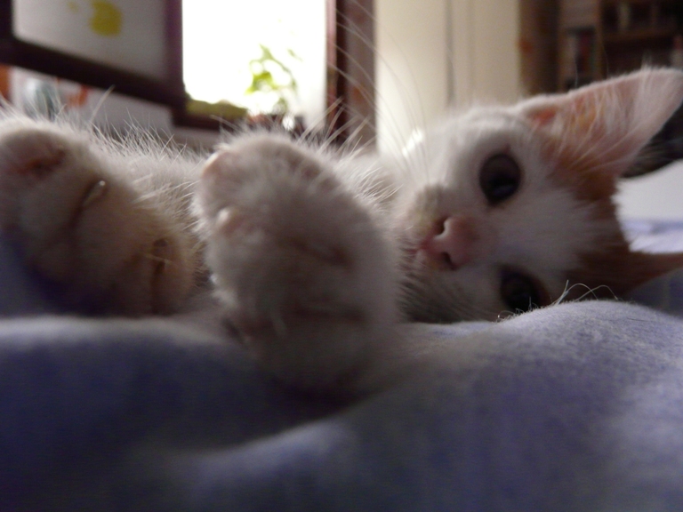 j'aime bien la photo de ton petit chat prise d'en dessous