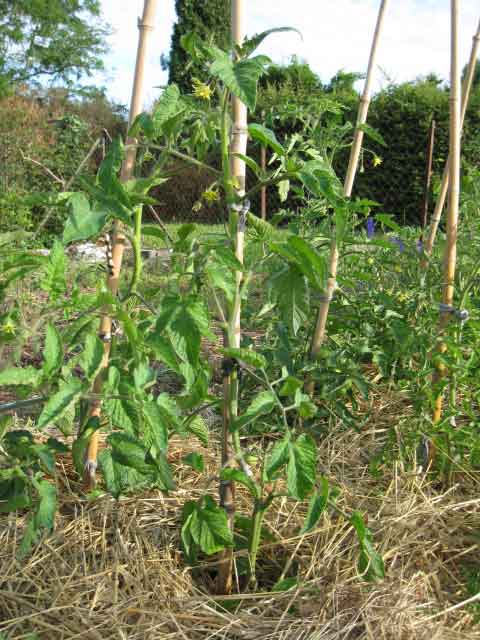 Les pieds de tomates ont été plantés dans les mêmes conditions sur les 2 planches et paillées en même temps.