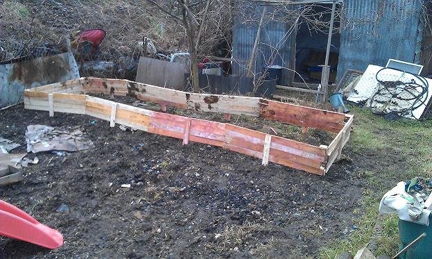 j'espère faire 10 planches (rectangle pour princesse) mais pour cela il me faudrait entre 50 et 60 palettes (j'ai déjà du en récupérer une 30ène) et beaucoup de temps + une partie de potager plus traditionnelle au dessu