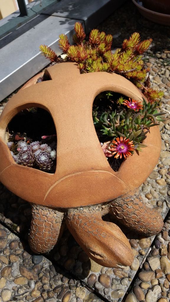 Elle est géniale ta tortue ! Moi j'ai une poule en argile et une grosse coccinelle installées au pied de mon bambou sacré ^^ Tu as encore tellement de place sur ta terrasse :p