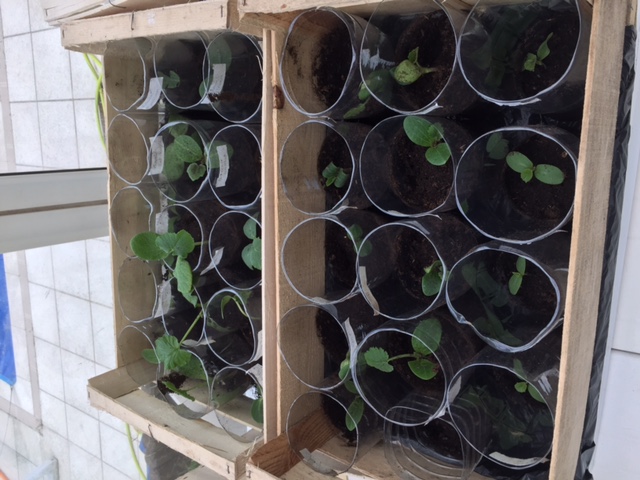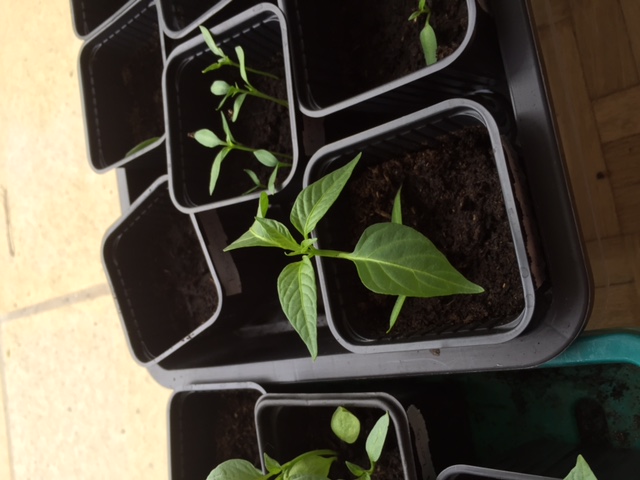 Tout mes cucu sont en pots individuels (des bouteilles de soda coupés en 2), les poivrons et les piments aussi!