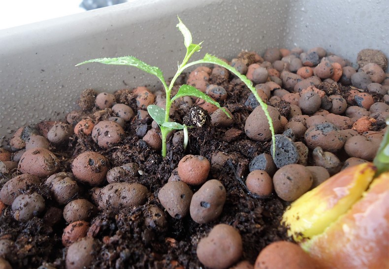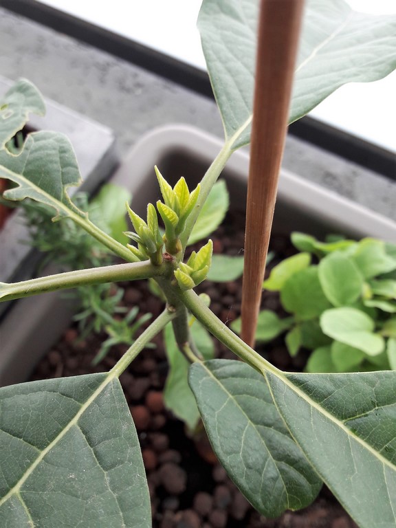 Je vais devoir pincer Michelle qui est dans un pot en extérieur. Je pense que malgré son manque de feuille, la première rangée de feuille est apparue !
