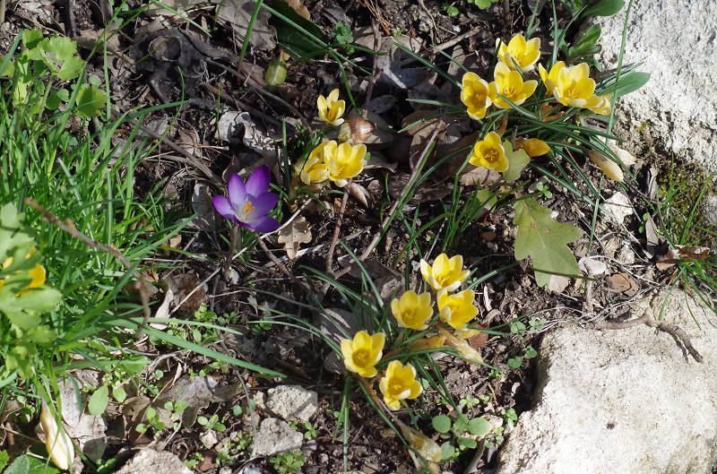 crocus avec fleurs jaunes à côté , peut être crocus aussi ?