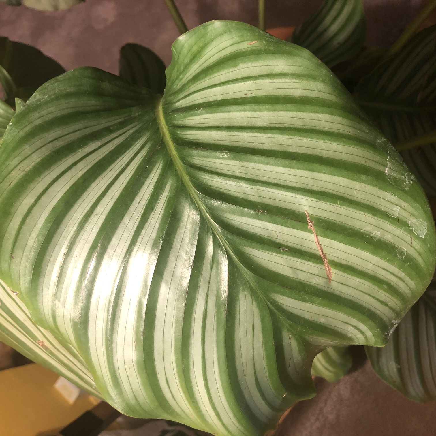 Alors depuis mon message j’ai encore lu beaucoup de choses et discuté avec un vendeur de chez Botanic. Selon lui, les tâches sont liées à l’arrosage, et il m’a dit ce qu’une autre vendeuse dans un autre magasin m’avait suggéré aussi : des arrosages moins importants et plus fréquents (2 fois par semaine), et avec une quantité régulière. Les tâches sont soit trop d’eau, soit pas assez.on est bien avancé mais en même temps je pense qu’on peut déduire dans quel cas on se trouve selon nos habitudes d’arrosage. L’air trop sec fait aussi sécher le bord des feuilles, et en regardant les photos des calathea orbifolia sur Instagram ou ailleurs, je me rends compte que les feuilles ont très souvent des petits défauts.. et j’ai aussi lu que l’orbifolia était le plus difficile à entretenir. Alors je me suis résignée à voir cette tâche, les autres feuilles pour le moment sont parfaites et je fais surtout attention à ne pas trop arroser. Chat échaudé.. d’autant que j’ai peut-être aussi trop arrosé un chlorophytum nouveau dans la maison.