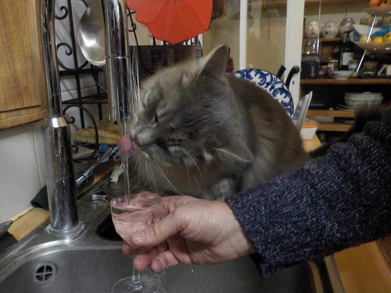 Ma boulette viens s'asseoir sur le bord de l'évier quand je fais la vaisselle et elle me regarde , mais elle ne s'approche pas du robinet lorsque l'eau est en train de couler .