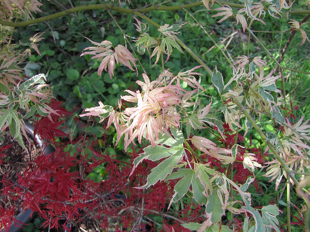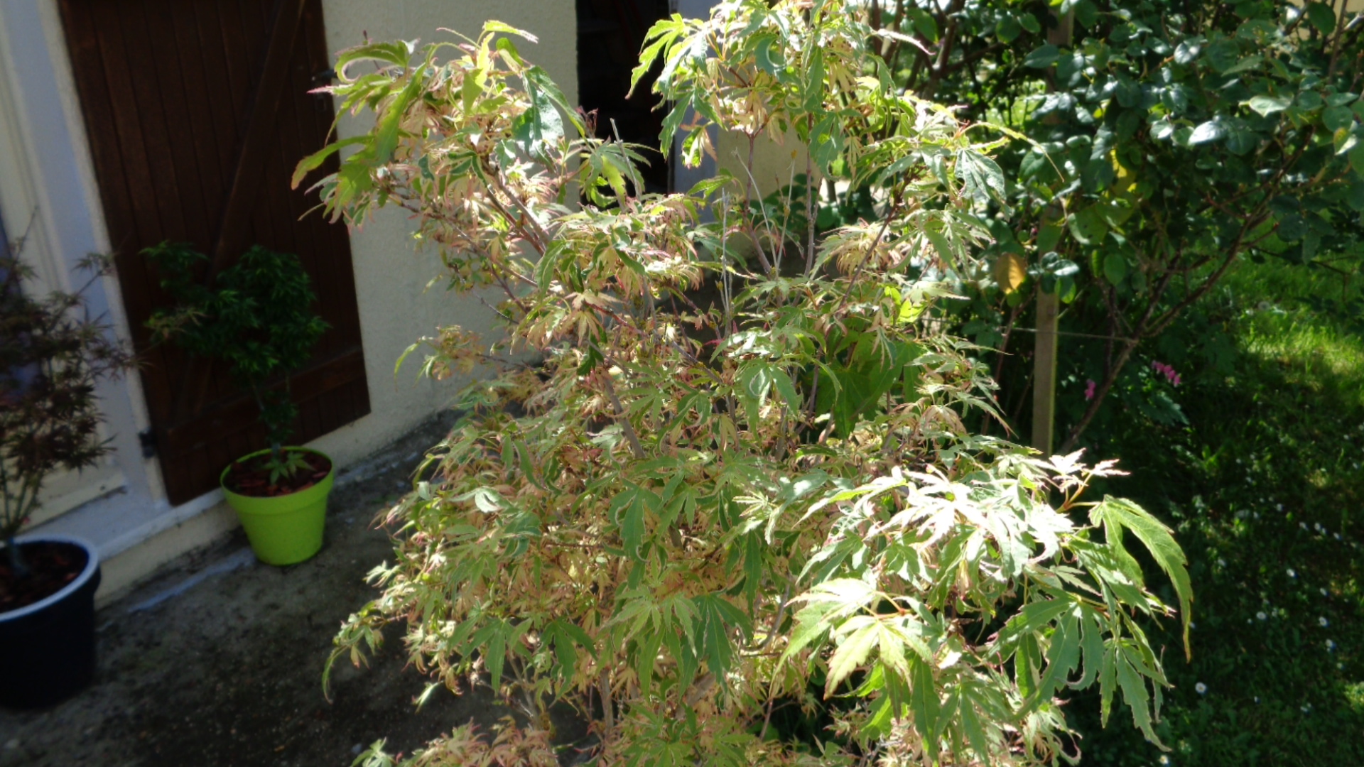Si à la fin du printemps tu constates que toutes leurs feuilles sont vertes et foncées comme celles des palmatum, on pourra dire que c’est une réversion (retour à la forme palmatum), dans ce cas il faudra supprimer ces pousses.