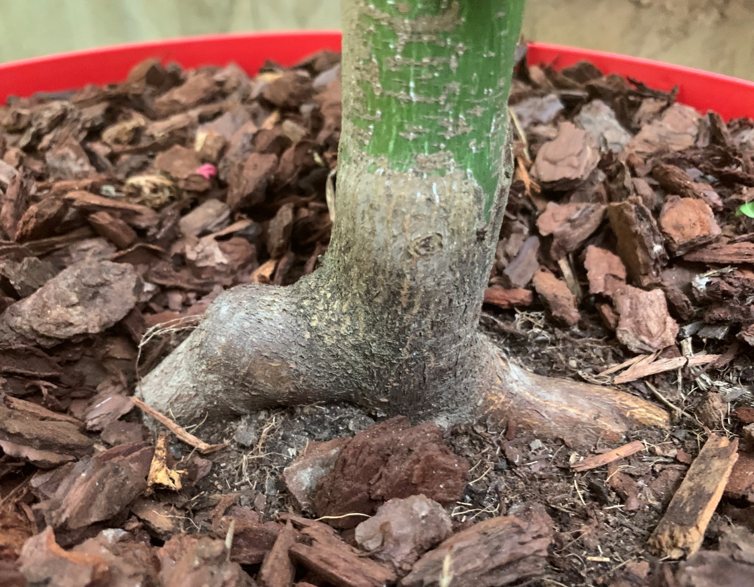 Perso j'ai l'impression qu'on voit bien la fente de greffage donc pour moi oui : sujet greffé!