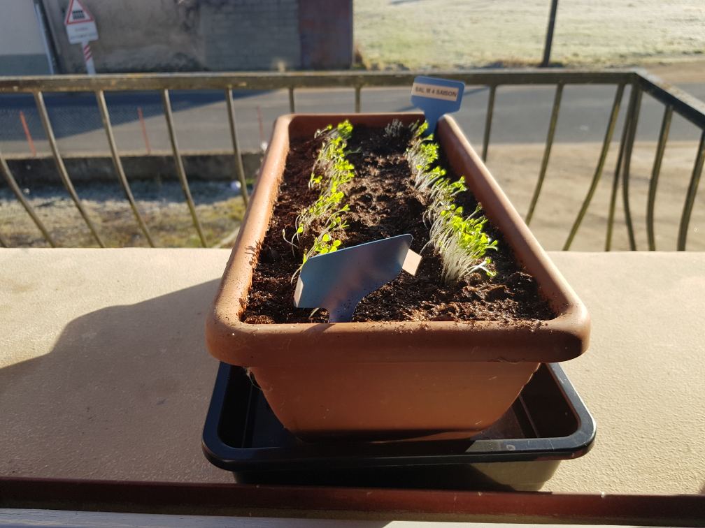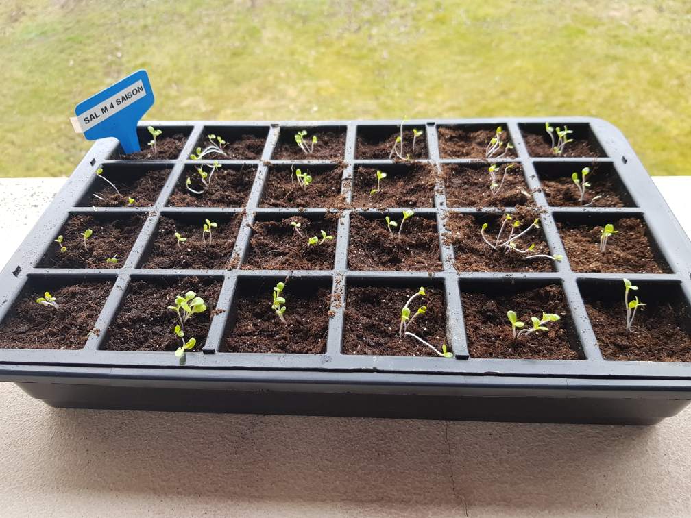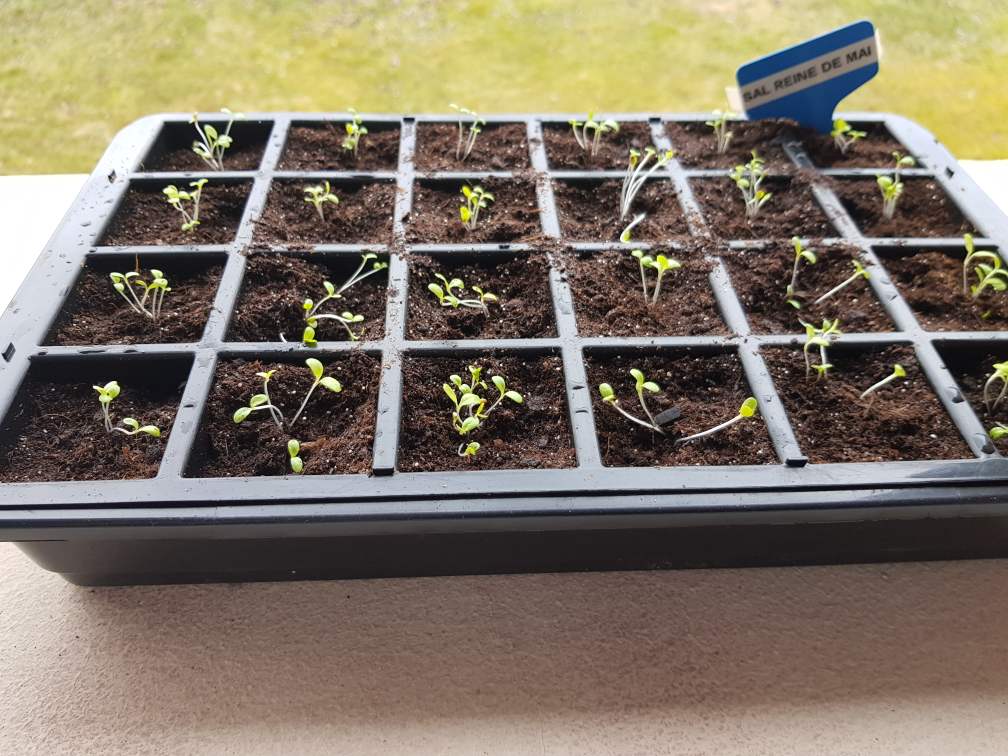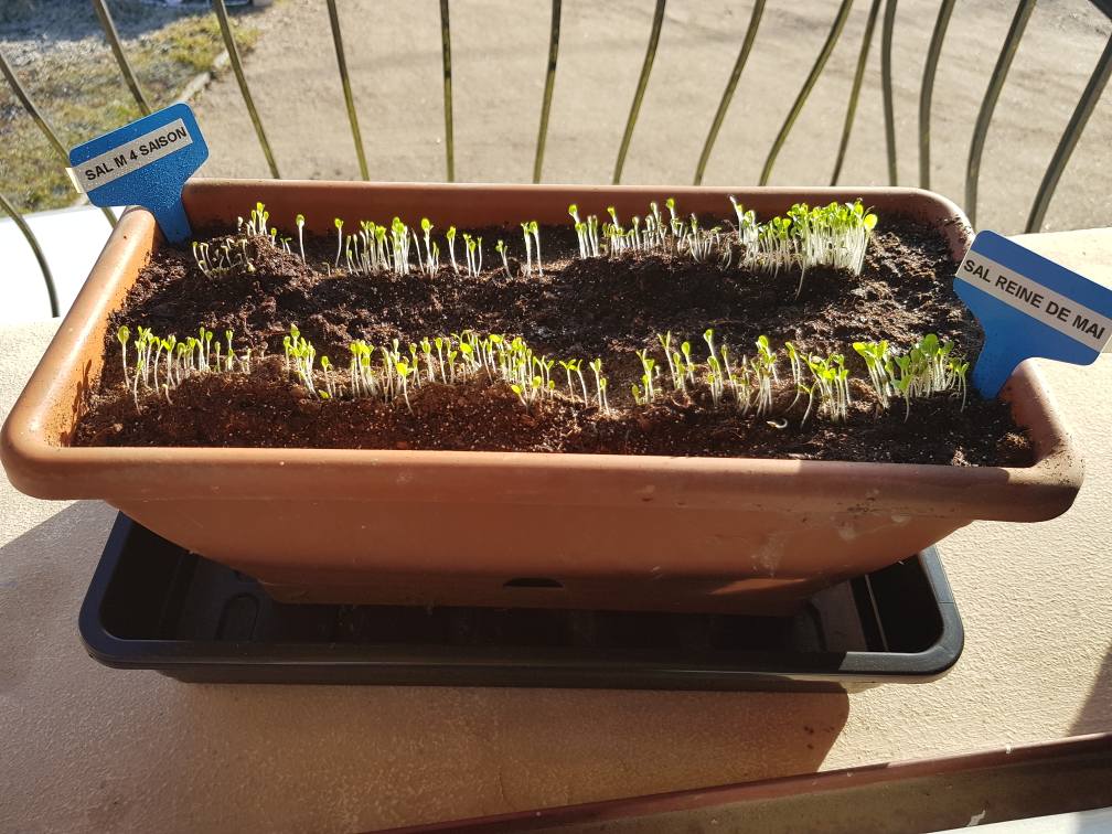 Si je peux me permettre de commenter ton semis de salade, j'ai peur que tu aies du mal à sauver tes plants, par manque de lumière ils ont 'filés' ce n'est pas forcément grave tant qu'ils ne dépassent pas ce stade, mais le problème c'est que tu as semé trop dense et du coup les plants ne vont pas pouvoir se renforcer et il va être difficile, voire impossible, de les manipuler pour les repiquer.