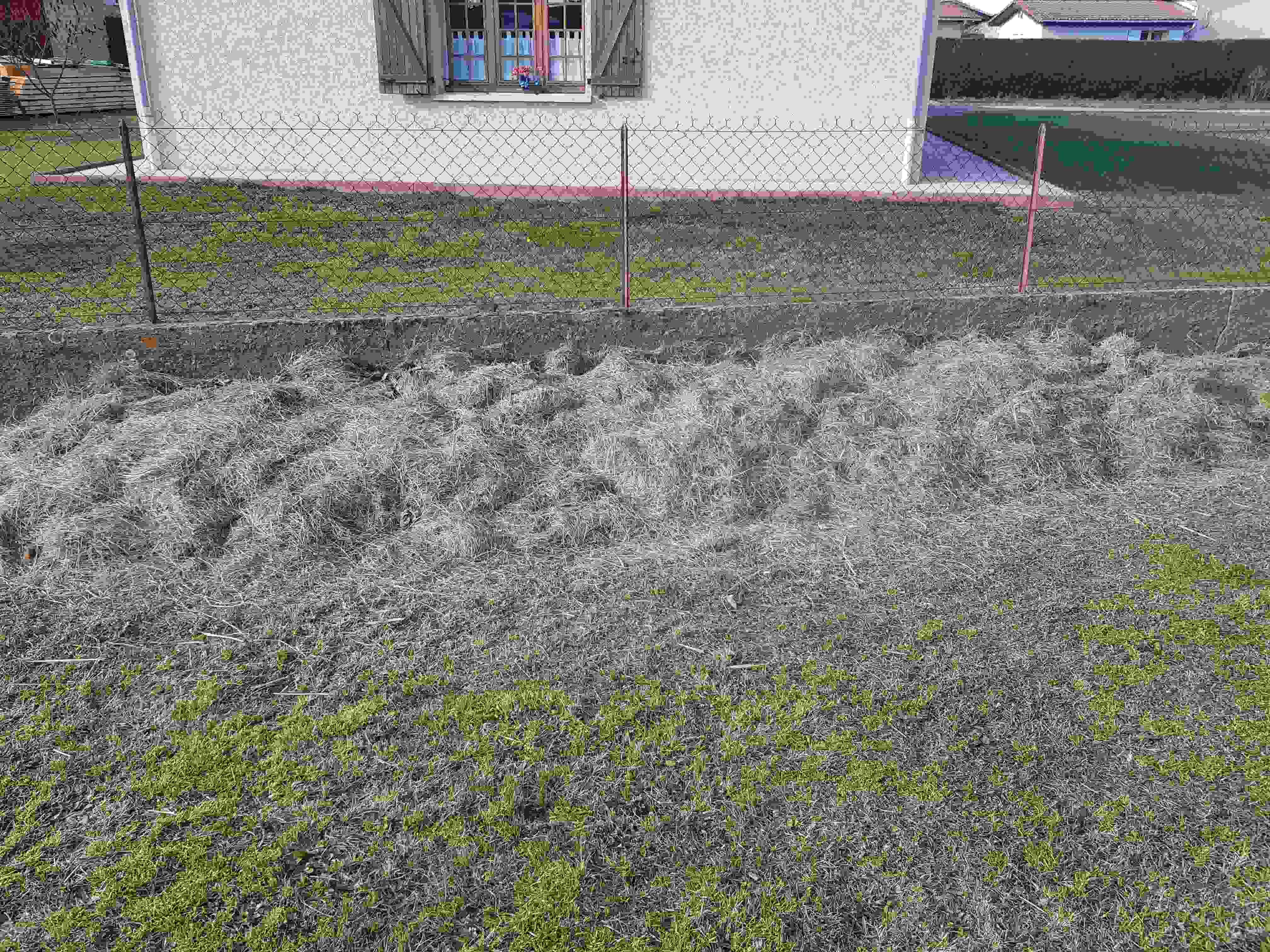 création d une lasagne paille et tonte de gazon j ai mis environ 10 cm de terre dessus et arroser a grande quantité le paillage de foin dessus ( du vieux foin que les bêtes n aimer pas c est pas du gâchis il aller finir en fouguat)