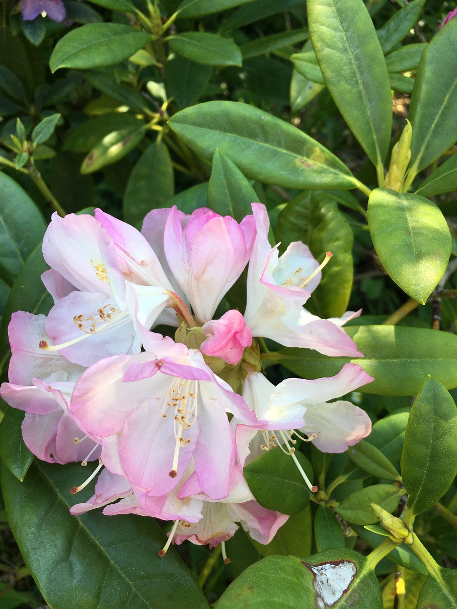Les rhododendrons pas trop prolifiques mais ils sont là