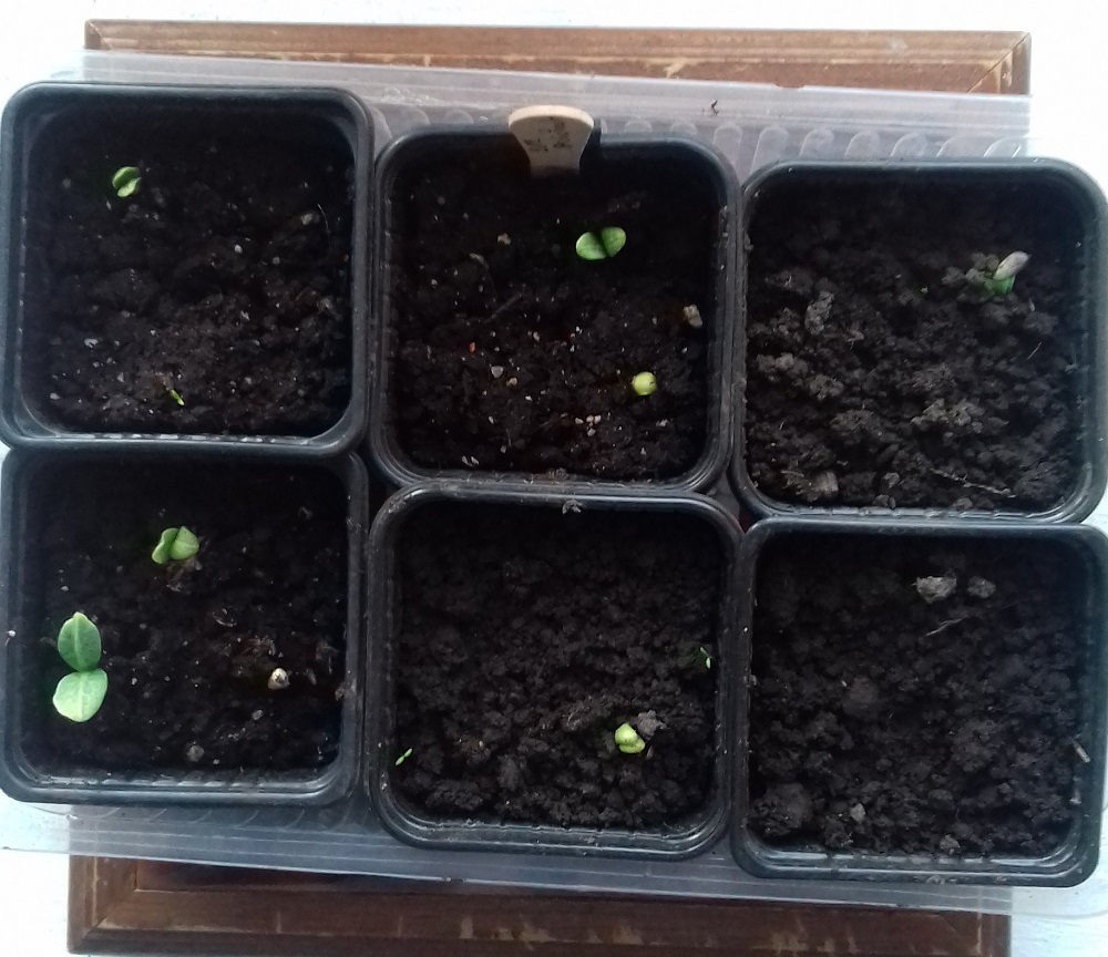 J'ai remplis 3 godets de 7 cm avec un terreau spécial semis et 3 autres avec de la terre de taupinière (je n'avais plus de terreau).