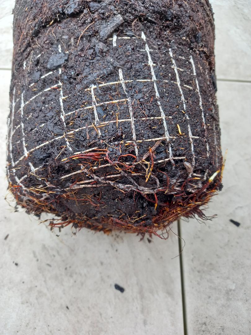 1°-les photos de la motte dépotée que tu posteras, c’est la motte démoulée du pot, telle que, sans la creuser.